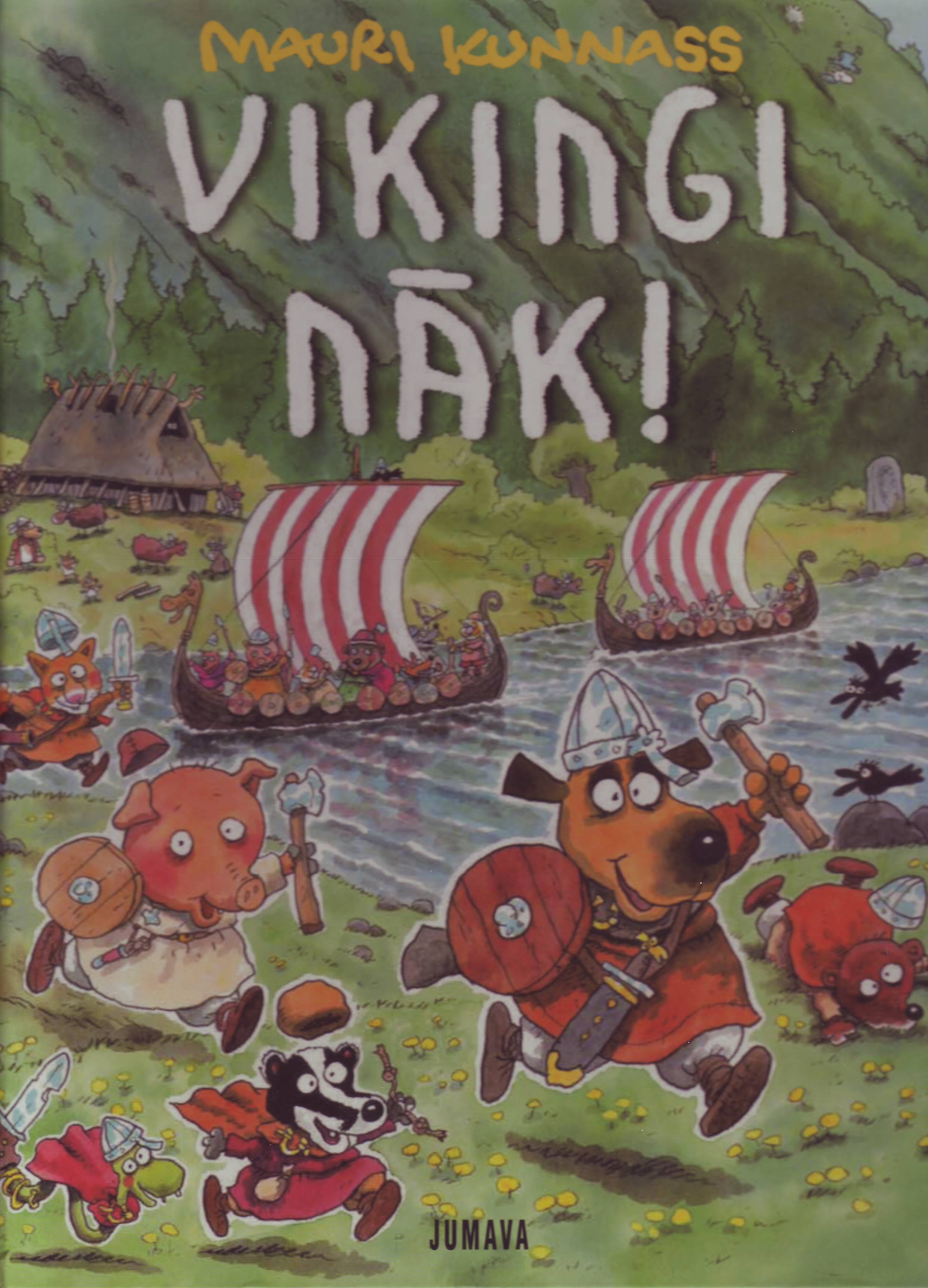 Kunnas, Mauri. Vikingi nāk! / Mauri Kunnass, Tarja Kunnasa ; [no somu valodas tulkojusi Maima Grīnberga]. Rīga : Jumava, 2007. 51 lpp. : il. ; 30 cm. ISBN 9789984382913.